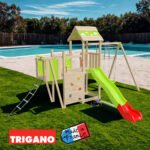 L’Aire de jeux bois 2,20 m STARRY XPRESSION – Trigano est conçue pour offrir un environnement de jeu sécurisé et amusant pour les enfants, avec des éléments variés adaptés à différents âges. Grande plateforme.