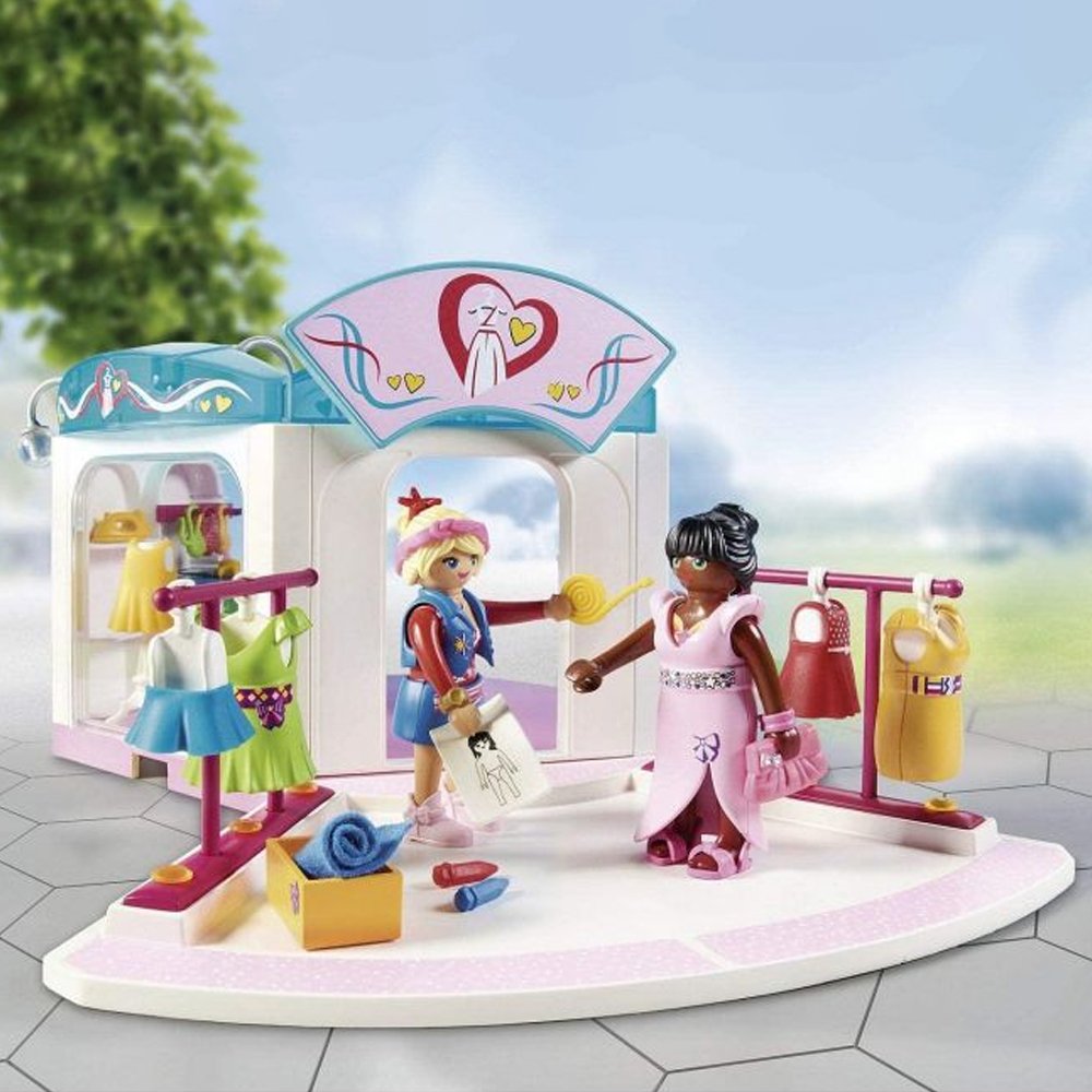 C’est parti pour une journée shopping ! Faire du shopping dans les magasins PLAYMOBIL est un réel plaisir. Dans l’Atelier Design de Mode -Playmobil, les créateurs conçoivent de nouvelles modes et les présentent aux clients dans le hall d’exposition. C’est vraiment l’endroit idéal pour faire ses achats !