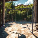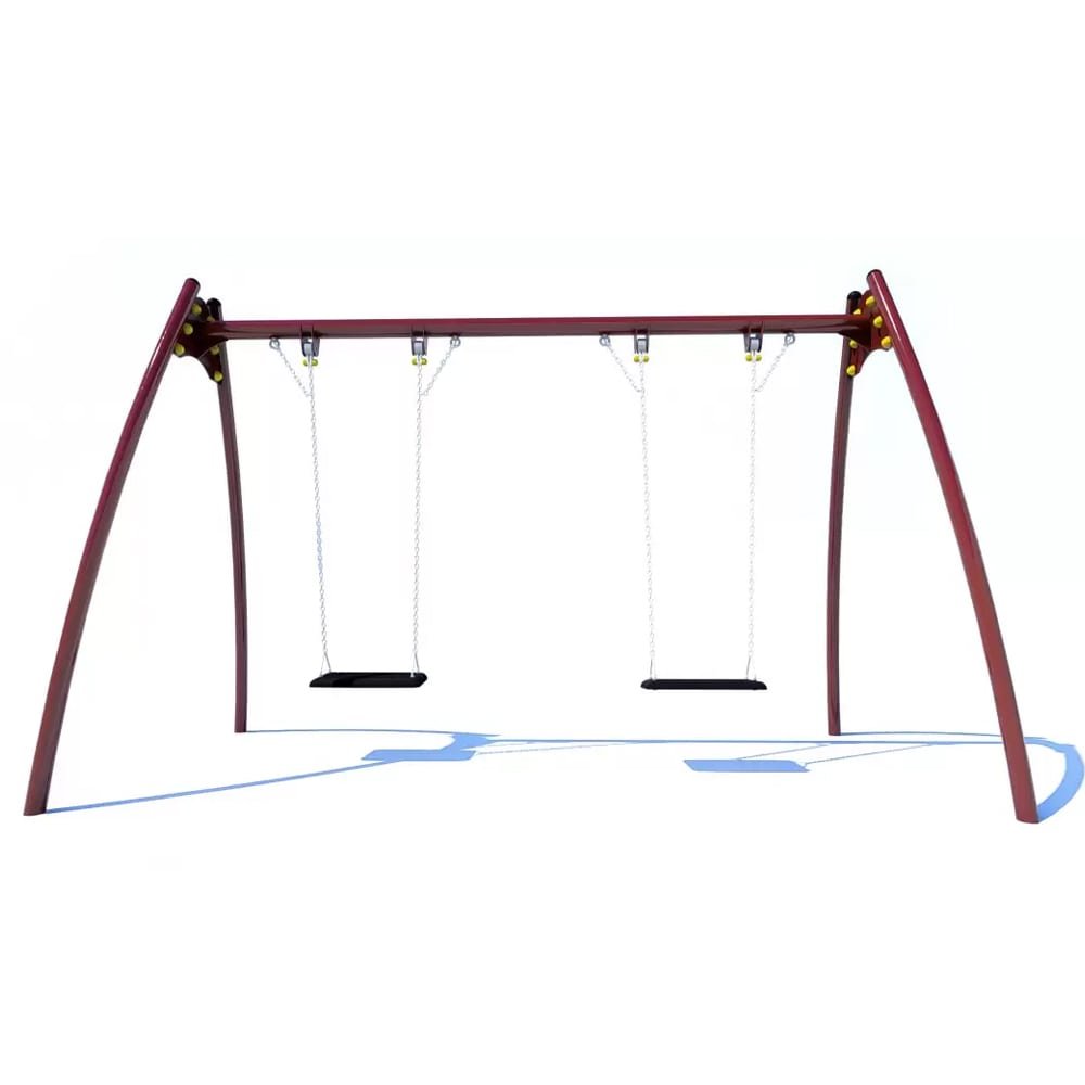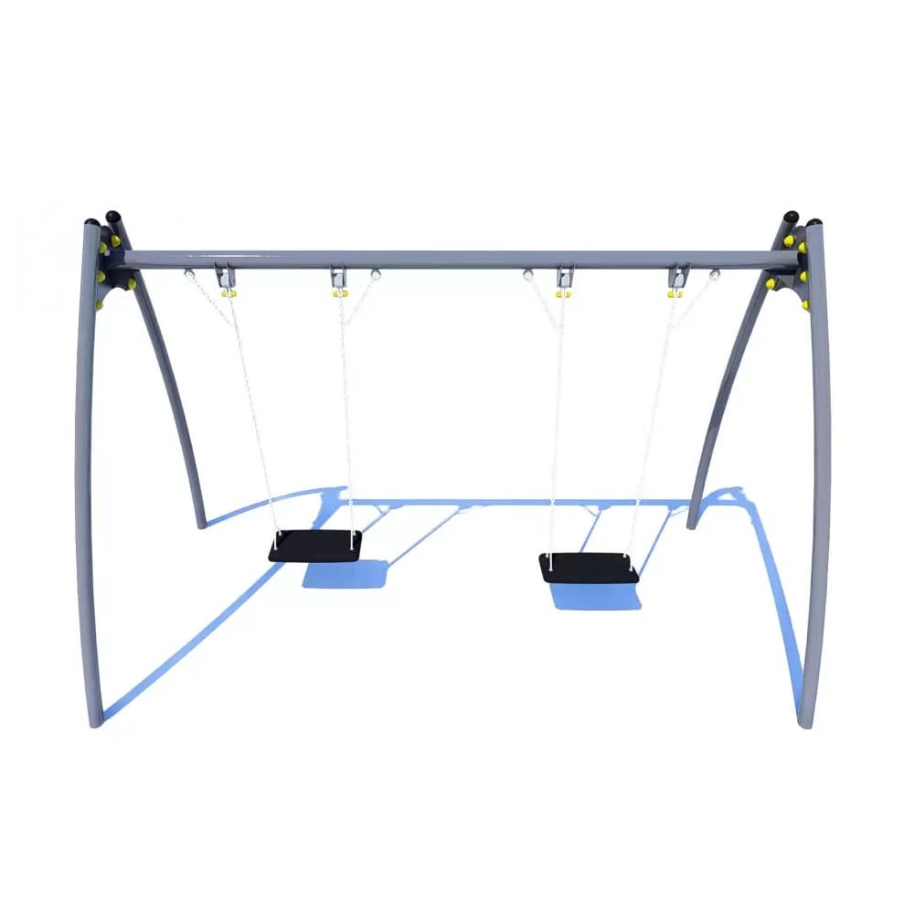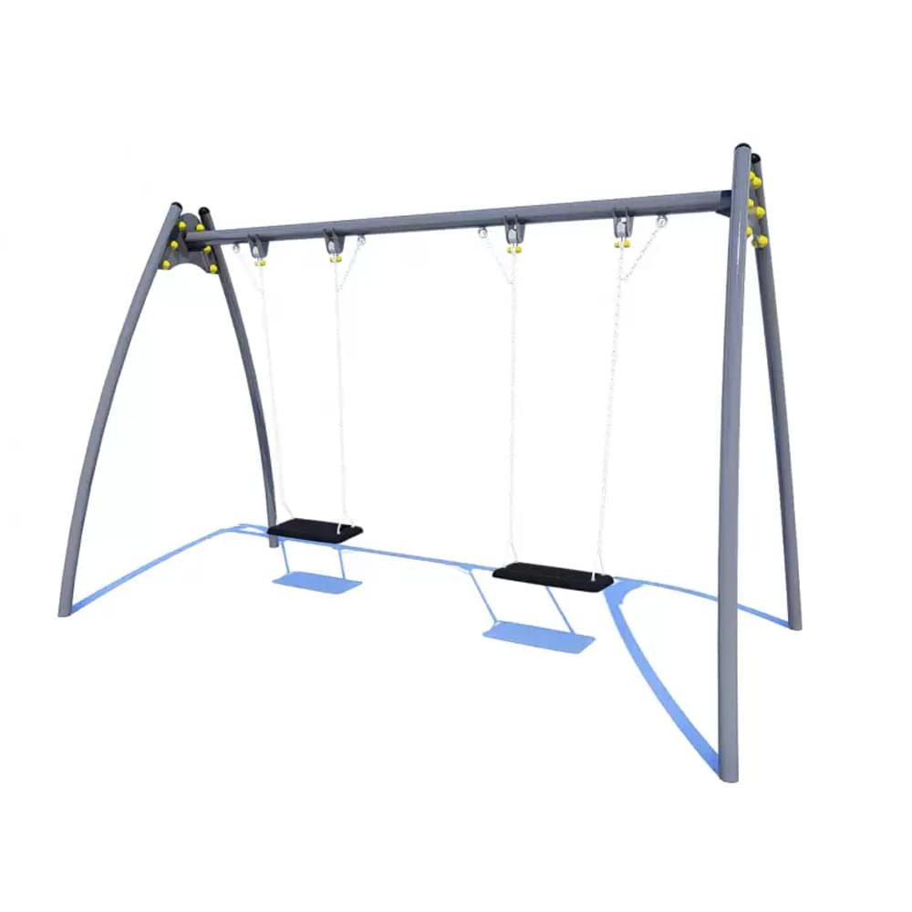 L’installation de ce Balançoire double sur support métallique est réalisée par bétonnage de pièces encastrées.