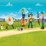 Les personnages peuvent s’entraîner à la base d’entraînement avec courses d’obstacles avec tonneaux et tir à l’arc. Avec Abigaëlle et Boomerang, Maricela et son cheval. La Base d’Entraînement -Playmobil Spirit contient deux chevaux, deux personnages, trois tonneaux, une cible, des accessoires (flèches, harnais, selles, arc…) et un bracelet.