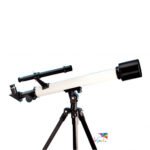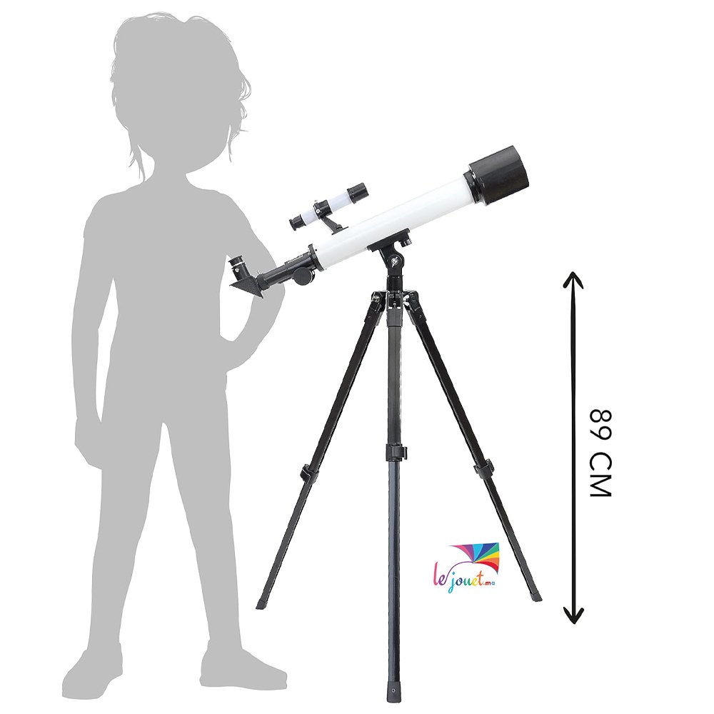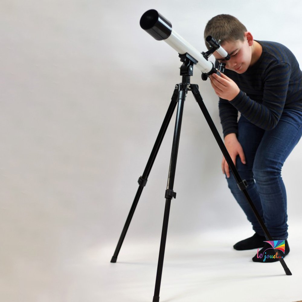 Description du produit : Un télescope avec une notice de 30 activités pour découvrir le ciel étoilé ! Avec tous les accessoires pour l’observation nocturne : trépied de sol de 89 cm, lentille de 50 mm de diamètre, objectif chercheur de 6×25 mm, 2 oculaires interchangeables, 1 lentille de Barlow 2.3x.