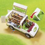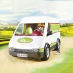 Aujourd’hui, c’est le jour du marché. Le Camion de marché Playmobil permet de vendre des produits de la ferme. Le camion magasin à toit dépliant propose des produits de la ferme tels que des légumes, des œufs, du lait, du miel, etc. Avec deux personnages.