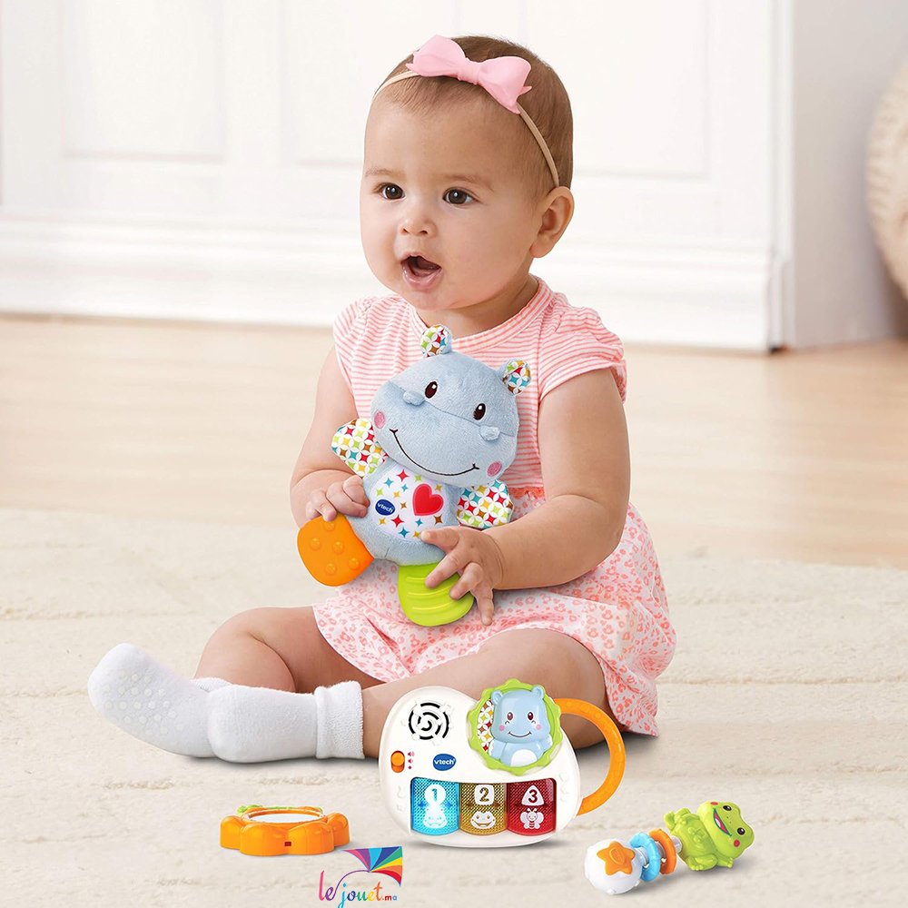Grâce au piano électronique, les tout-petits découvrent leurs premiers airs de musique en compagnie de leur ami l’hippo.