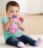 Un hippo tout mignon à câliner et mordiller ! Avec ses pattes en plastique souple, ce petit hippopotame tout mignon permet d’apaiser au mieux les douleurs dentaires de Bébé. Il l’accompagne partout au rythme de ses chansons et mélodies et stimule son sens du toucher grâce à ses différentes matières. Bouton lumineux pour déclencher des chansons, des mélodies, des phrases et des sons amusants. Pattes à mordiller pour soulager les gencives et apaiser les douleurs dentaires. Différentes matières pour éveiller Bébé et stimuler son sens du toucher.