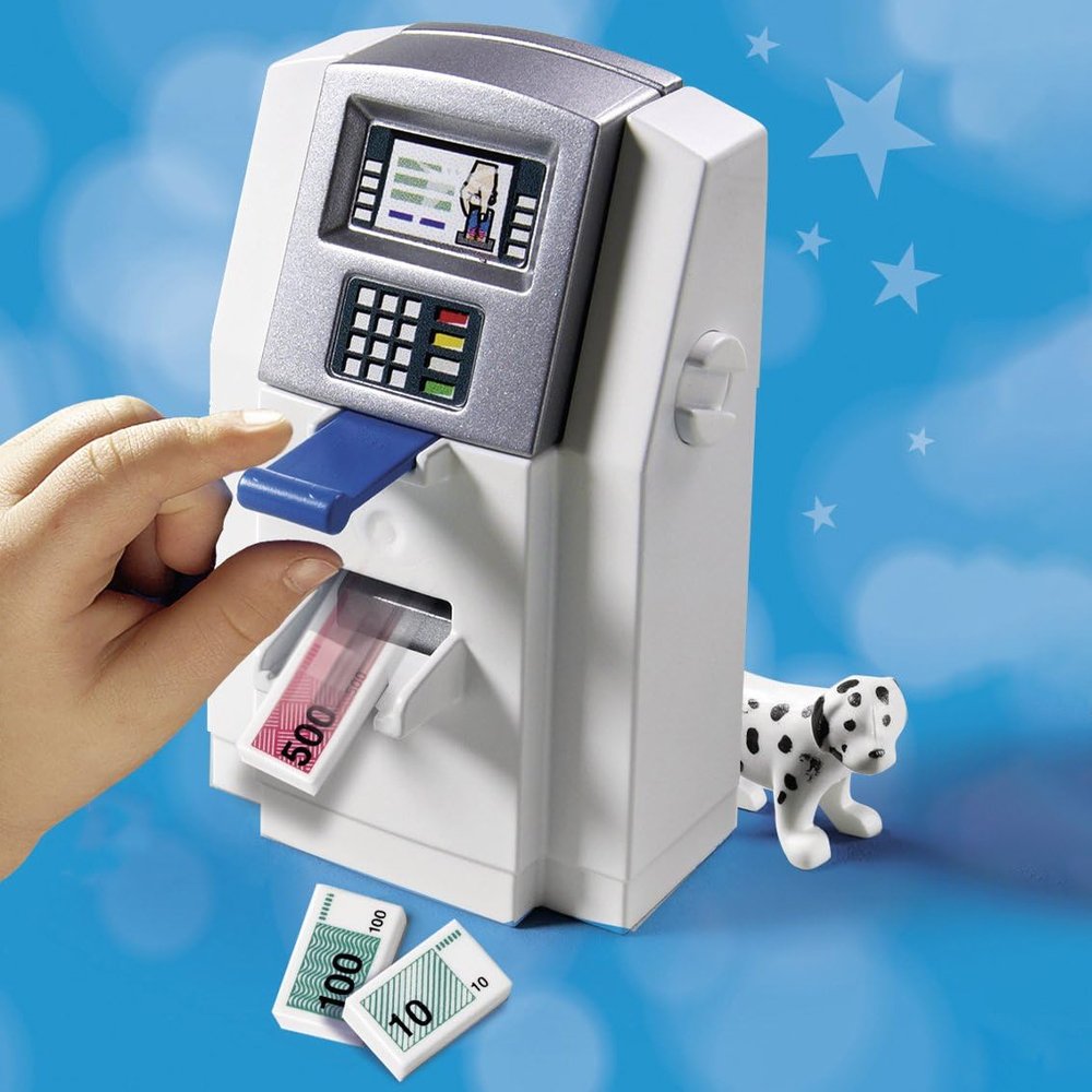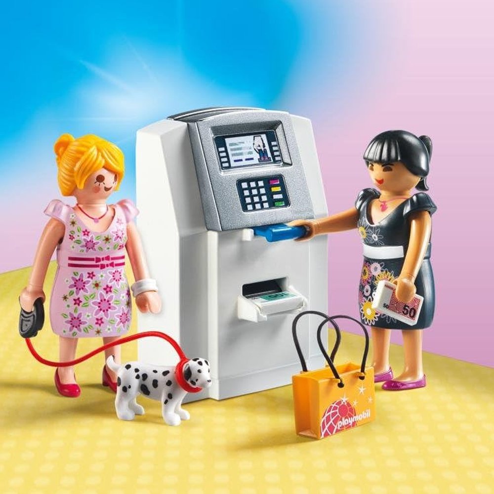 Une cliente rêve de s’offrir la robe du mannequin de la boutique de mode Playmobil, mais elle a besoin d’espèces pour effectuer son achat. Pas de problème, oriente-la vers le DISTRIBUTEUR AUTOMATIQUE – PLAYMOBIL CITY LIFE de la galerie marchande !