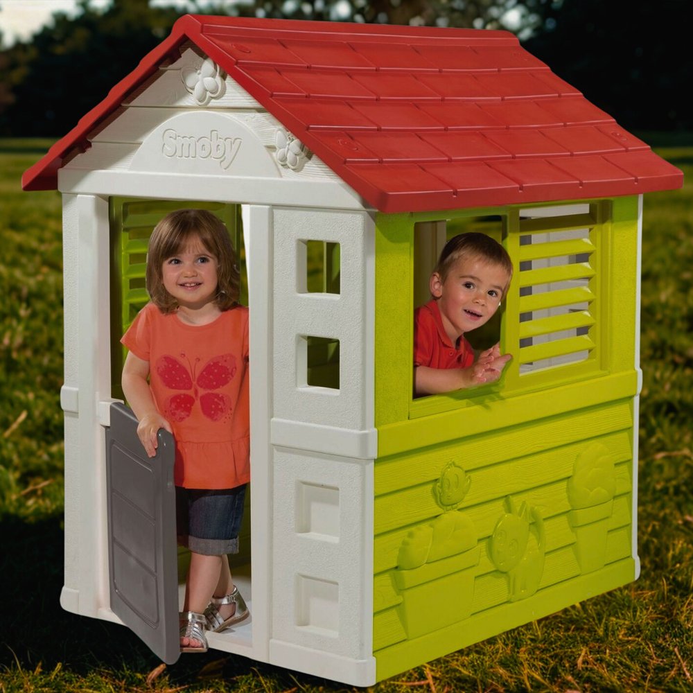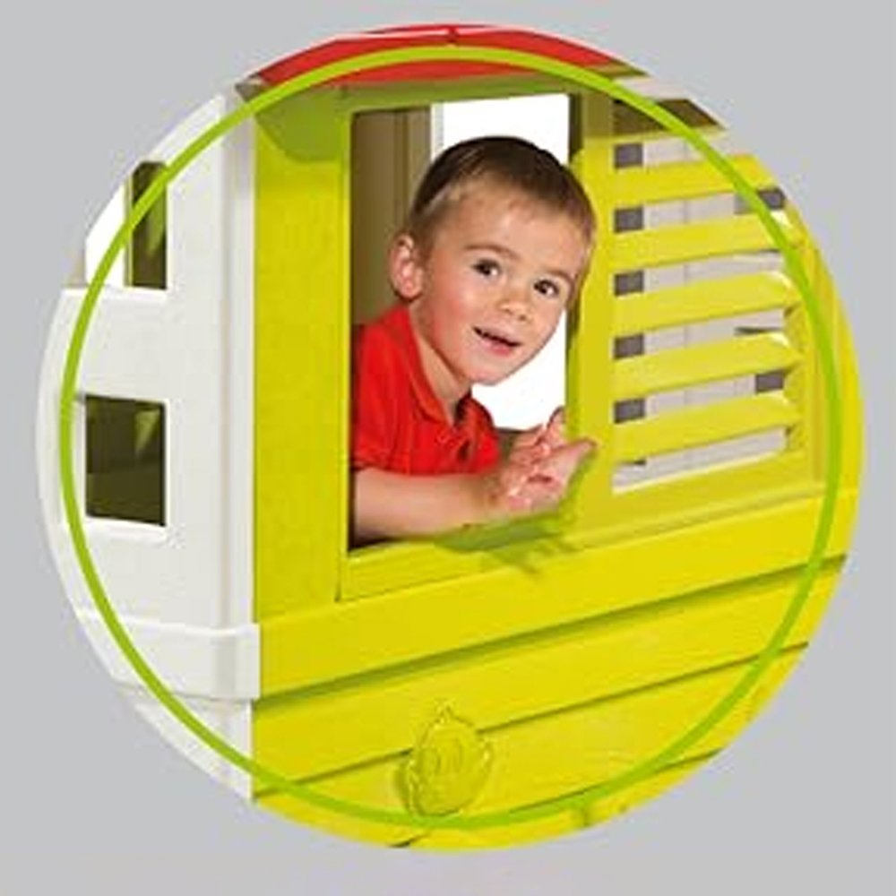 Donnez du relief à votre jardin, avec la Maison Domek Lovely – Smoby – au design moderne. Les enfants vont s’y amuser avec leurs petits copains. Équipée de 2 fenêtres avec persiennes + 1 volet coulissant + 1 portillon (plastique soufflé) en façade. Structure stable et résistante. Pour le côté ludique, des dessins d’animaux (chat, petits oiseaux…) sont en relief sur les murs.
