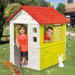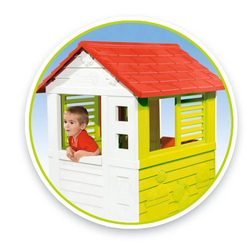 Vous cherchez vos enfants ? Vous les retrouvez derrière la maison, ils seront certainement en train de jouer dans leur nouvelle maison de jardin. C’est une petite maisonnette moderne de Smoby, aux couleurs vives où les enfants vont s’amuser avec leurs petits copains toute la journée.