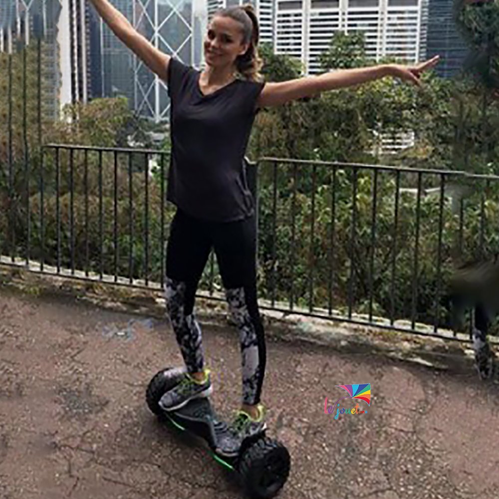 En effet, le Hoverboard Tout terrain 4×4 Noir est spécialement conçu pour qu’il s’impose. Un poids de 14 kg, charge maximum de 125 kg, des puissants moteurs de 700 Watts au total, une vitesse max de 15 à 20 km/h. une autonomie de 15 à 20 km (4 à 5 heures), l’indicateur LED du niveau de batterie, une Batterie Lithium-ion 36V 4-4AH et l’éclairage LED
