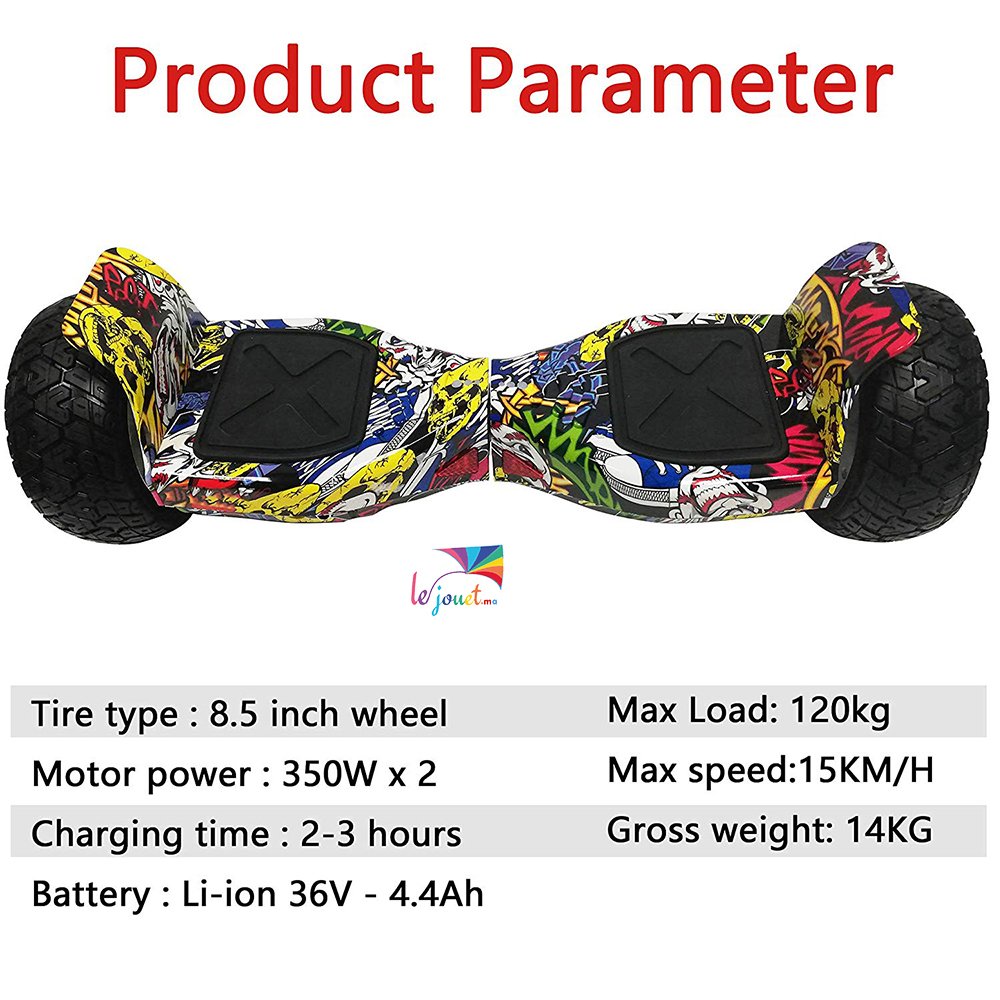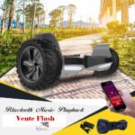 Le Hoverboard Tout terrain 4×4 Noir D’un design à la fois agressif et tendance, est un modèle haut de gamme, dernière génération et une sécurité optimale (conformité CE). En plus ce hoverboard diffuse de la musique grâce à sa connexion Bluetooth intégrée compatible avec tous les téléphones Android et ios.