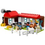 - Les aventures de la ferme – LEGO DUPLO Comprend une ferme avec une chambre et des toilettes à l’étage, une grange avec une cloche qui monte et qui descend au moyen d’une corde, un tracteur, un banc de pique-nique et un toboggan.