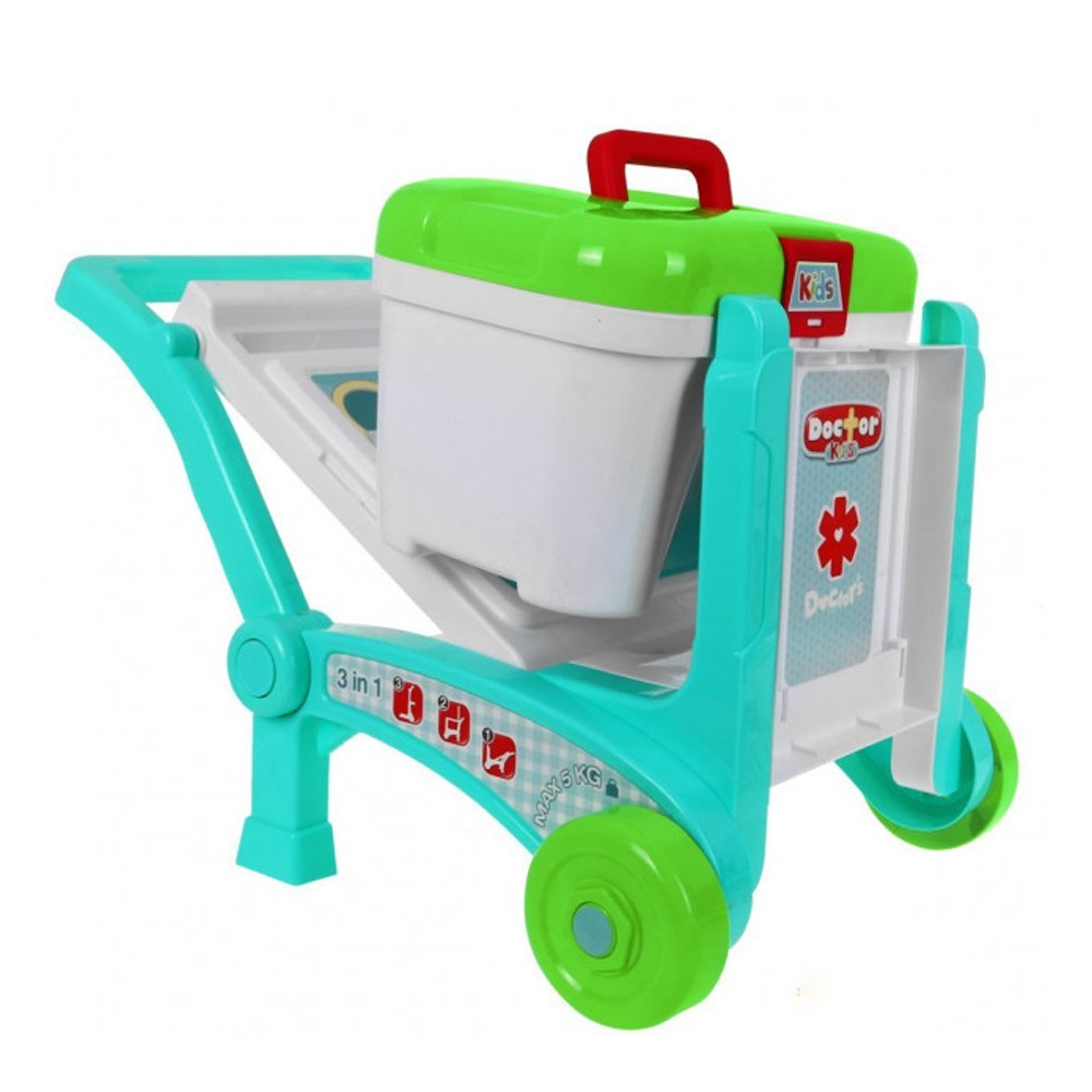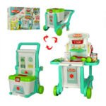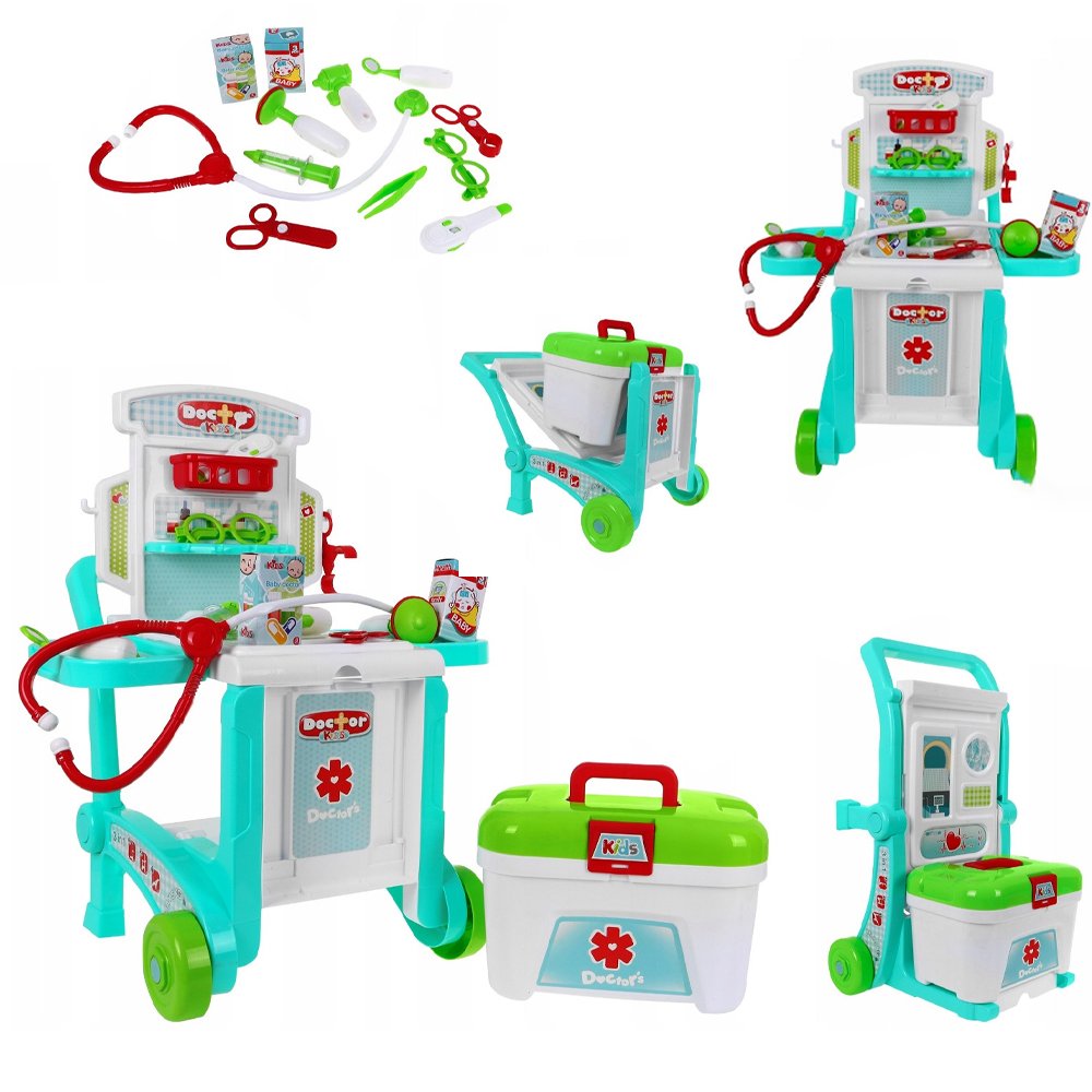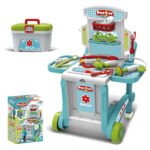 Le kit médical dans une valise (008-929) se compose d’une table facilement transformable en chariot à roulettes, d’une boîte spacieuse et d’un instrument médical. Tous les accessoires sont fabriqués en plastique durable, avec des bords arrondis et sont sans danger pour les enfants de plus de 3 ans.