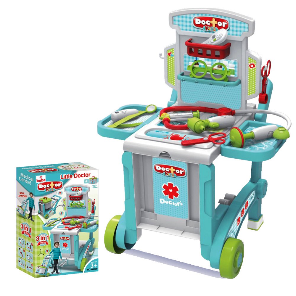 Avec la mallette à outils 3-en-1 sur roulettes du docteur, votre enfant se sentira comme un vrai médecin jouant avec cet incroyable ensemble d’instruments médicaux.