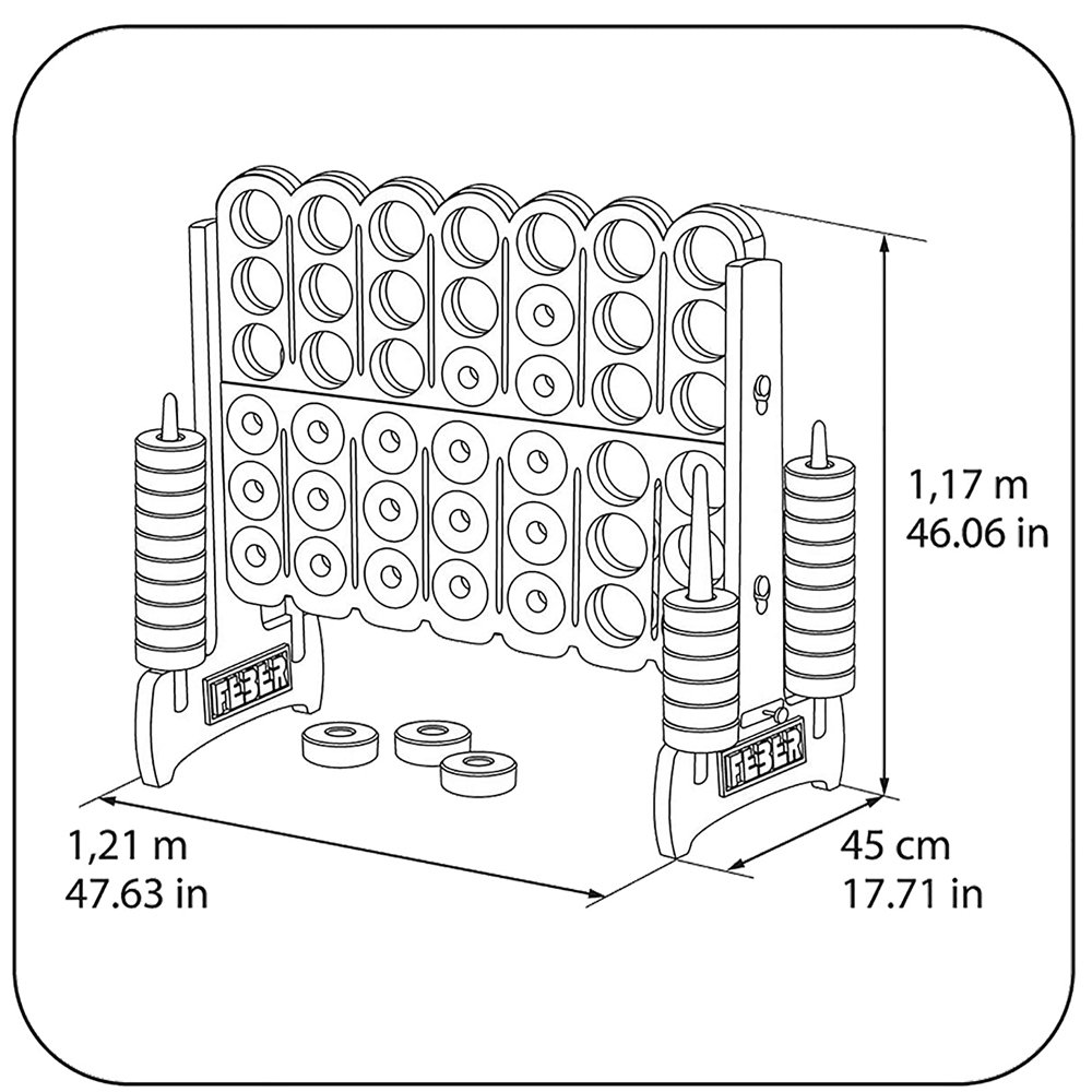 - Le Mega 4 in Line est très résistant et se monte et se démonte facilement. Une fois le jeu terminé, il peut être sauvegardé sans problème, ce qui le rend facile à utiliser et à stocker. Poids du produit: 12,5 kg.