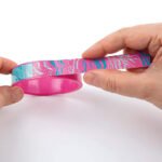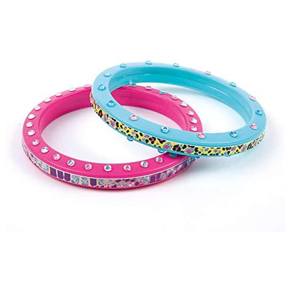 Bracelets en plastique rigide ou élastiques à décorer avec des pierres adhésives ou des stickers à effet animal ou pailleté et lumineux pour déclencher votre imagination.