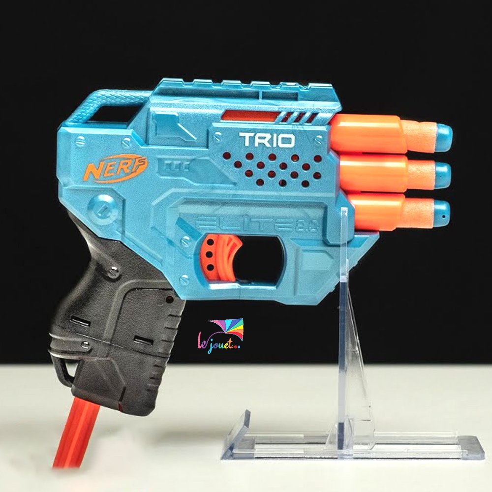 1 tir 3 fléchettesLes 3 canons superposés verticalement du Trio TD-3 ne laissent aucune chance et peuvent contenir 1 fléchette chacun. Il suffit simplement de tirer la poignée et d’appuyer sur la détente pour submerger tes adversaires de 3 fléchettes en même temps. |