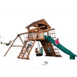 Le fort de jeu Olympian Summit XL dispose d’un espace de jeu de 25 pieds carrés, d’un pont de 6 pieds de haut et est livré en standard avec une paroi rocheuse, une échelle combinée et une balançoire pivotante à pneu. Les ensembles de jeux en bois Backyard Adventures sont modulaires afin que chaque famille puisse concevoir son aire de jeu parfaite.