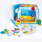 - Ce jeu contient également un fond coloré et des systèmes mécaniques pour faire nager les poissons dans les eaux aventureuses de cet aquarium !