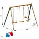 Ce portique est livré avec trois agrès : deux balançoires et une face-à-face, le tout en plastique. Résistantes et ergonomiques, ces balançoires sont confortables et réglables. Vous pourrez donc les adapter à la taille de vos enfants (de 3 à 12 ans). Facile à installer, le portique affiche des dimensions de 2,18 m x 3,03 m, pour 2,30 m de hauteur. Il devra être impérativement scellé dans du béton afin de garantir une sécurité optimale. Les pattes de scellement sont d’ailleurs incluses.