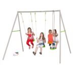 Le Portique en métal axion louise -Trigano est destiné à des enfants à partir de 3 ans et jusqu’à 12 ans. Il est tout en métal et dispose de 3 agrès permettant de recevoir jusqu’à 4 enfants en même temps : 2 balançoires et 1 face-à-face.