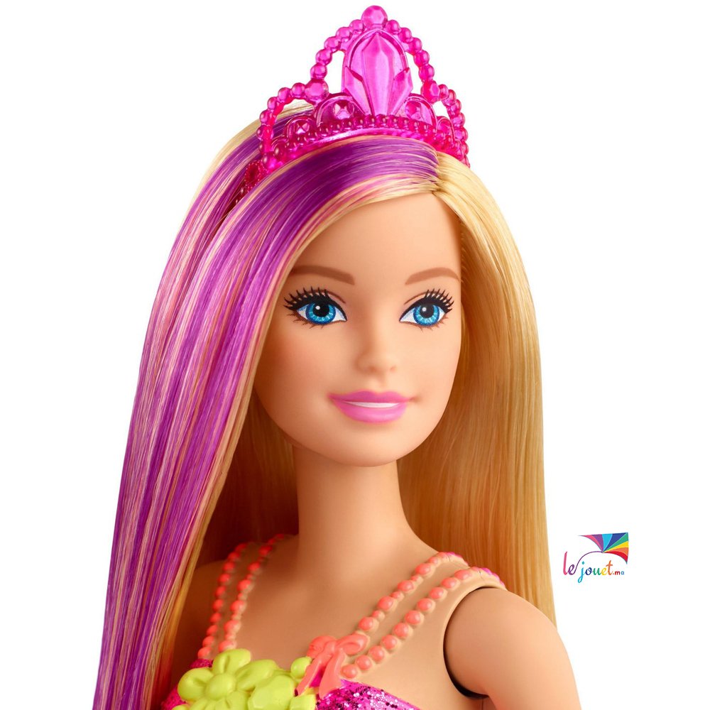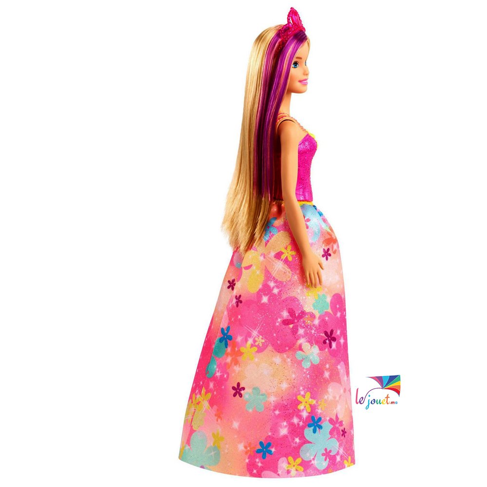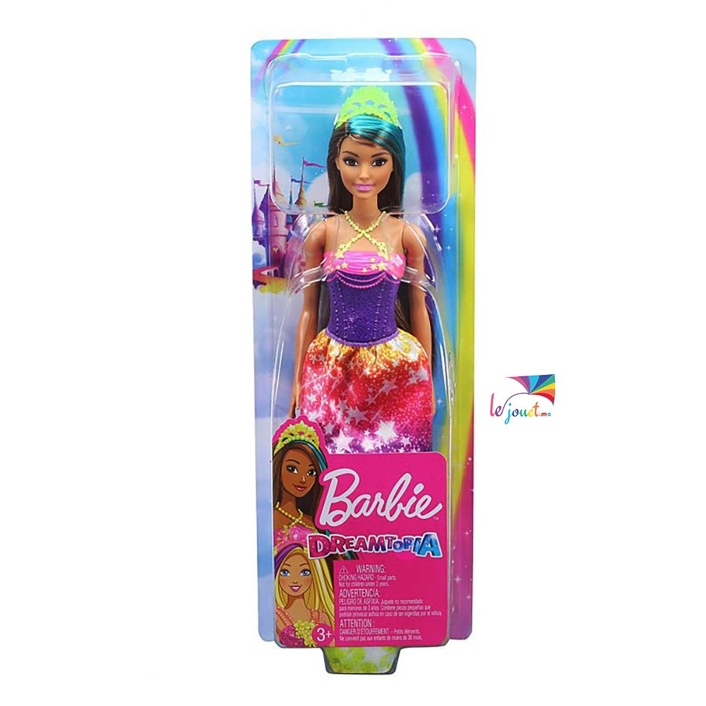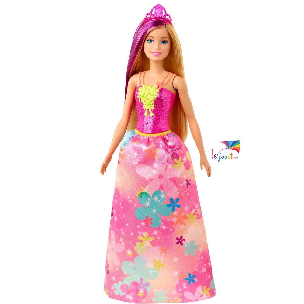 Les poupées Princesses de Barbie Dreamtopia donnent vie aux rêves de contes de fées dans des looks fantastiques aux touches colorées! Cette poupée Barbie Princesse est habillée pour une occasion royale vêtue d’un corsage rose étincelant et d’une jupe voyante à imprimé floral. La mèche violette dans ses cheveux blonds ajoute une touche de couleur, et le diadème de couleur vive complète son look fantastique. Jouez facilement des rêves réels et imaginés avec les poupées Barbie Princesses, car lorsque vous entrez dans Dreamtopia, vous vous retrouvez dans un monde où les rêves deviennent réalité! Collectionnez les autres poupées et jouets Barbie Dreamtopia pour construire le monde magique et laisser libre cours à votre imagination. Chacun est vendu séparément, selon la disponibilité. Les poupées ne tiennent pas debout toutes seules. Les couleurs et les motifs peuvent varier.
