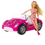 Ta poupée Steffi adore aller à la plage ! Grâce à son cabriolet floral elle peut s’y rendre quotidiennement ! Elle porte une jolie robe estivale pour profiter pleinement du soleil ! A partir de 3 ans.