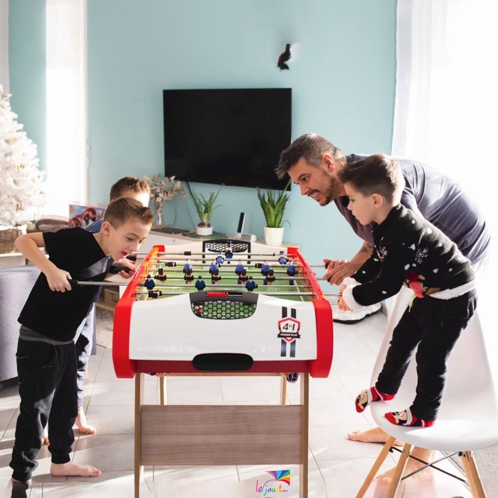 Le Babyfoot PowerPlay 4 en 1 : billard, ping-pong, hockey et babyfoot