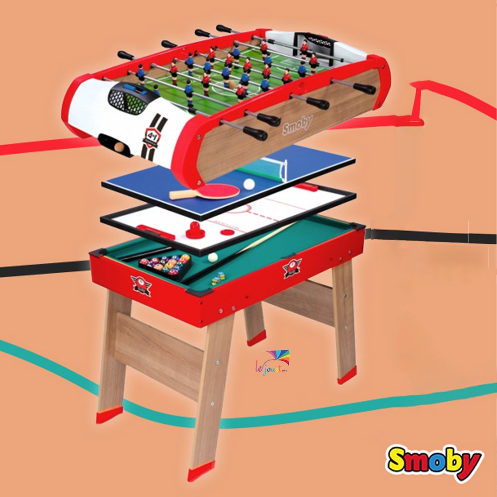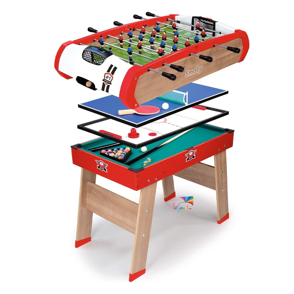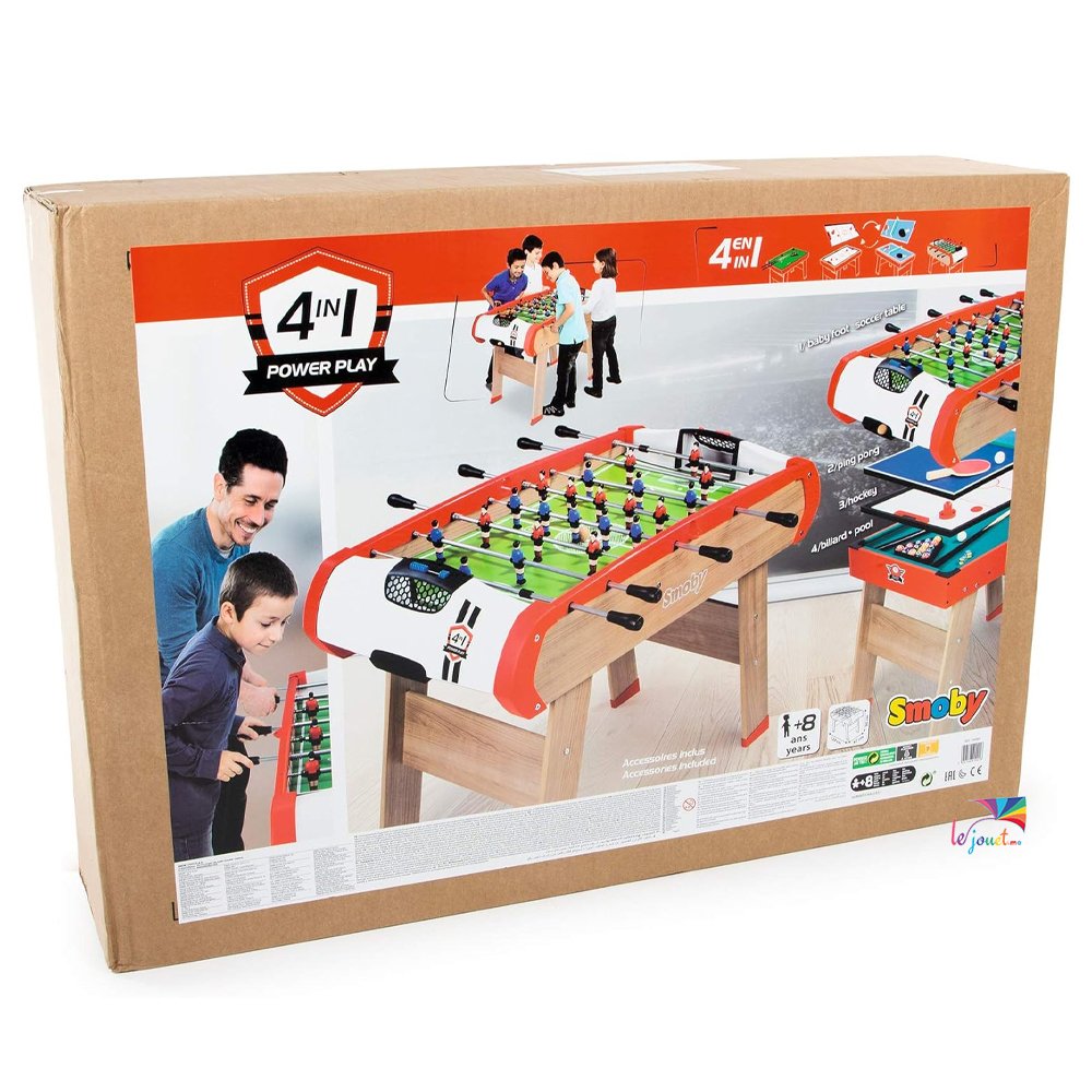 Smoby-Le Babyfoot PowerPlay 4 en 1 : billard, ping-pong, hockey et babyfoot