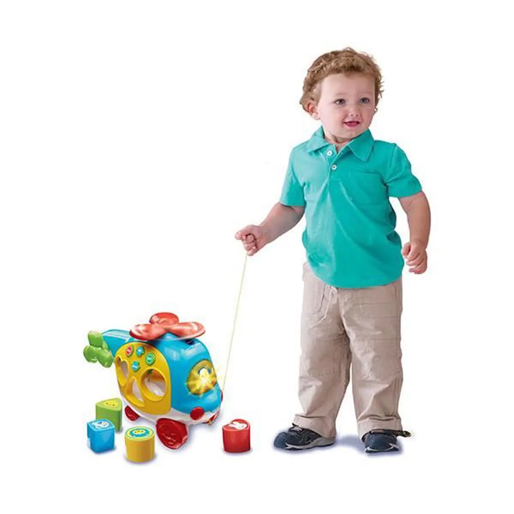 Le Vtech Trier & Spin hélicoptère est un jouet à tirer, qui invite votre enfant à explorer le monde des couleurs et des formes. Accompagné par d’attrayantes chansons, de mélodies et de phrases qui encouragent votre enfant à améliorer ses capacités motrices tout en aidant à développer des premières compétences linguistiques.