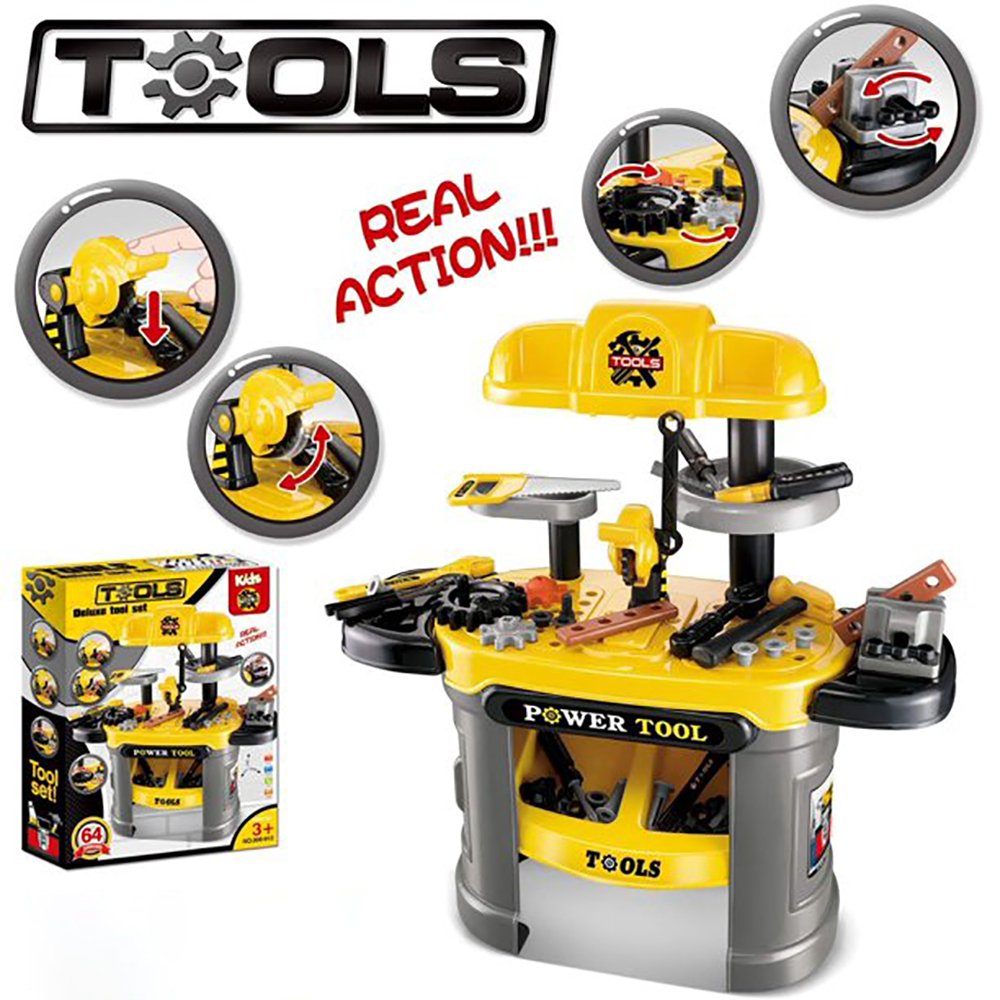 Cette table comprend tout ce qui fait le rêve des petits bricoleurs pour poncer, percer, s’affairer, construire. Elle est parfaitement équipée, de nombreux outils. Votre chouchou devient un bricoleur professionnel !