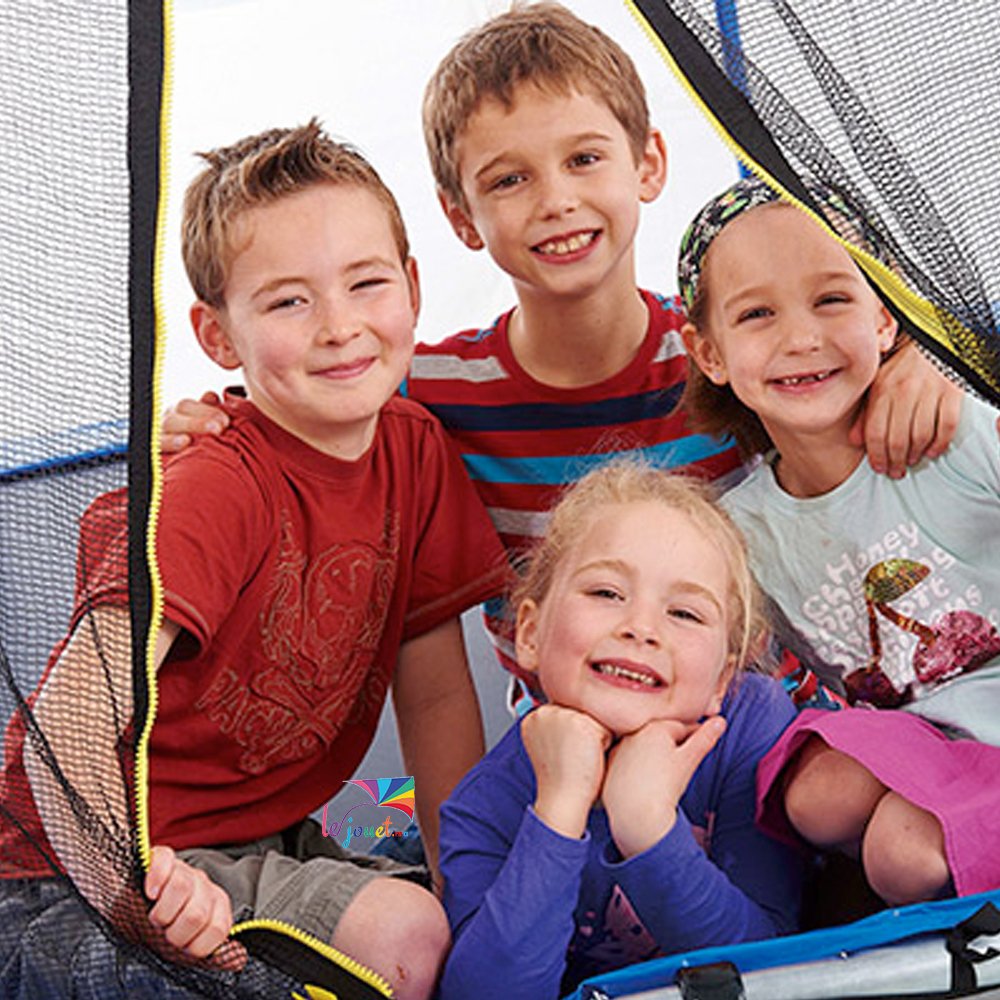 Rebondir sur le tapis en toute sécurité grâce à son filet. Il est le compagnon idéal pour vos enfants et permettra d’améliorer leur équilibre et la coordination de leur mouvement.