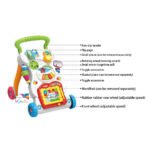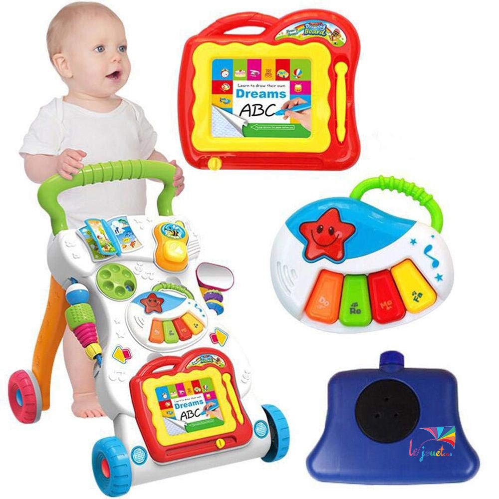 - Ce trotteur d’apprentissage interactif et multifonctionnel comprend un panneau de jeu détachable, composé d’un jouet et d’un trotteur. Ici il aide bien bébé qui veut marcher partout et le divertit ac les petits jeux.
