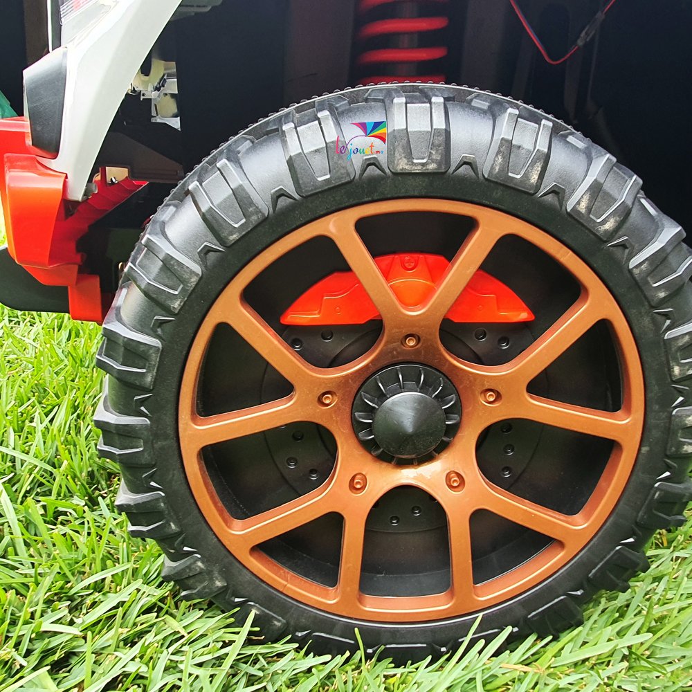 La voiture électrique pour enfants style BMW M5 est équipée de phares LED avant et arrière, d’un plafonnier avec bouton séparé, de feux de jour au plafond, d’un volant musical, d’un klaxon et d’une télécommande individuelle configurable via Bluetooth. Les amortisseurs avant et arrière assurent une conduite fluide, même sur terrain accidenté, et les roues en caoutchouc assurent une traction fiable.