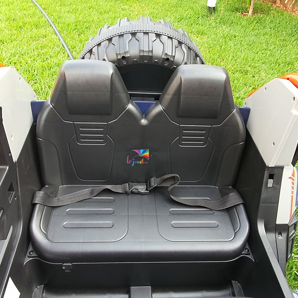 De plus, le panneau multimédia est équipé d’une entrée USB, du Bluetooth et d’un indicateur de charge de la batterie. Les portes s’ouvrent et un mode bascule est disponible, activé par un bouton pratique. Le système de valise avec poignée arrière amovible simplifie le rangement et le transport de la voiture électrique.