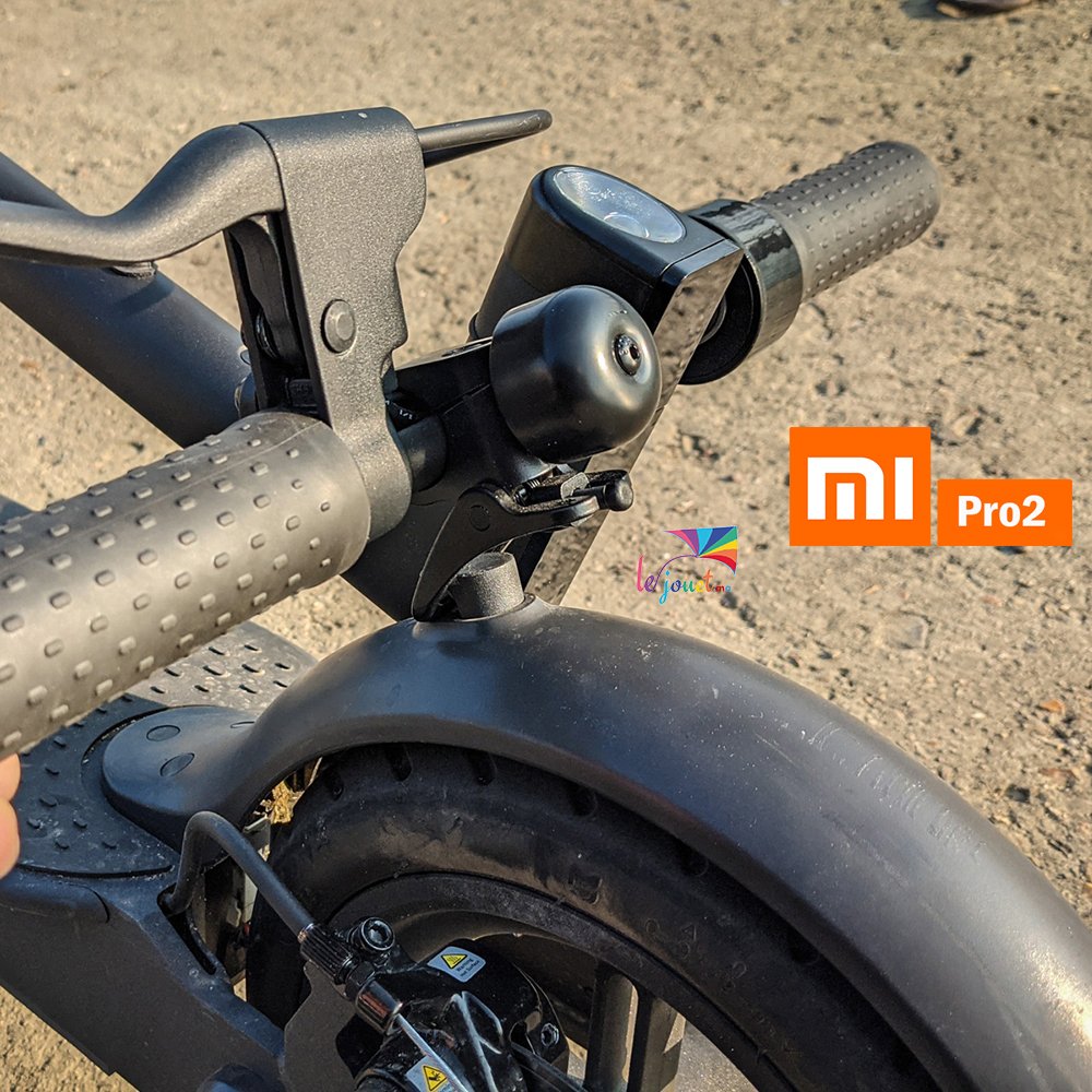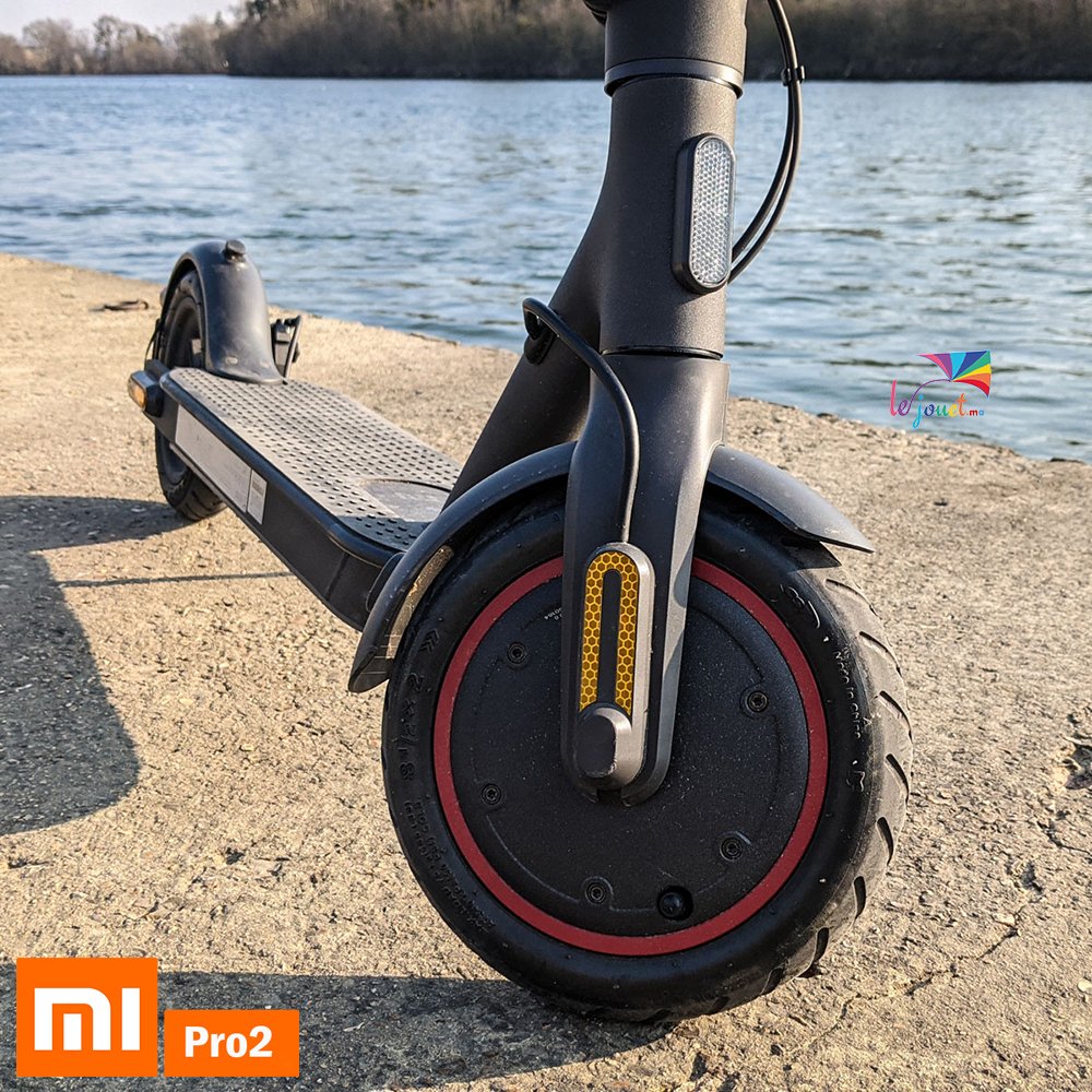 Cette version Pro 2 se distingue surtout par son moteur 300 watts (600 watts en crête), sa vitesse maximale de 25 km/h et une autonomie annoncée à 45 km. Attention toutefois : il s’agit d’une donnée communiquée par Xiaomi prenant en compte un utilisateur de 75 kg, sous une température de 25 °C et une vitesse constante de 15 km/h. Vous verrez dans notre test que nous n’obtenons pas les mêmes les résultats avec 10 kg de plus et une gâchette de gaz vissée sur (quasiment) l’intégralité de notre boucle de test.
